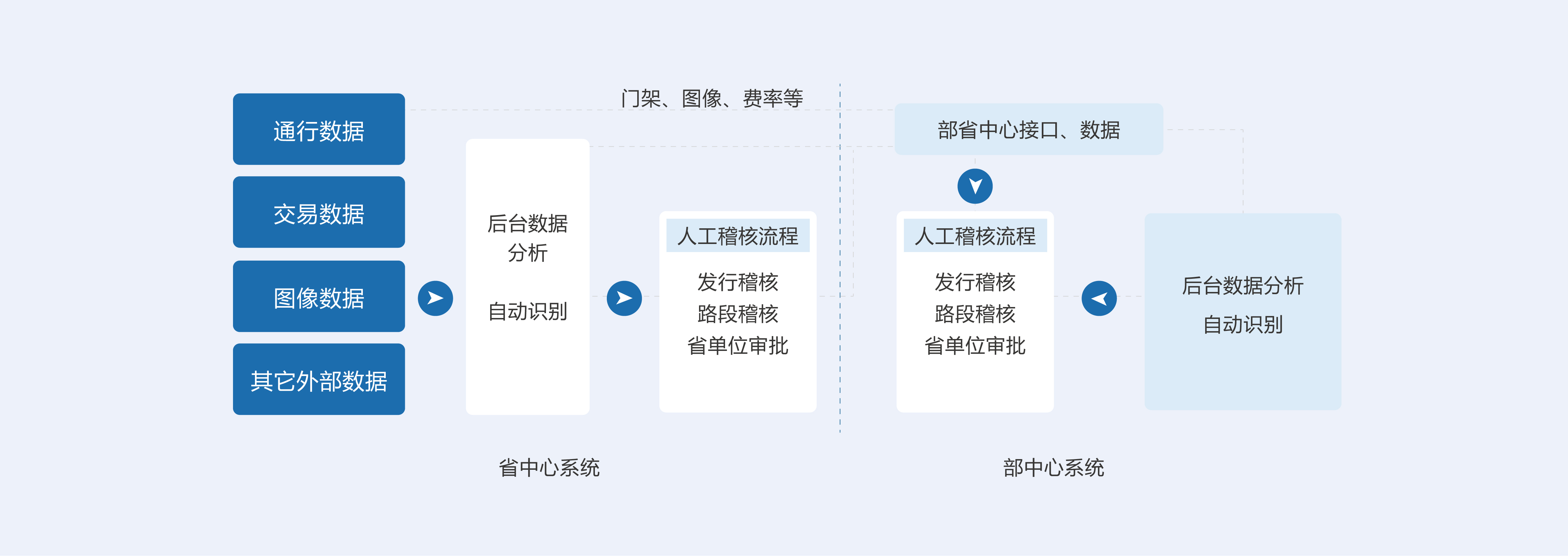 根据部中心的指导意见,省中心建设要求,稽核系统整体上包括且不限:数据采集、数据筛选、证据链生成、稽核认 定(内、外)、特情复核、异议申请、名单管理、用户档案管理、车辆档案管理、综合查询、统计报表等十多项功能。